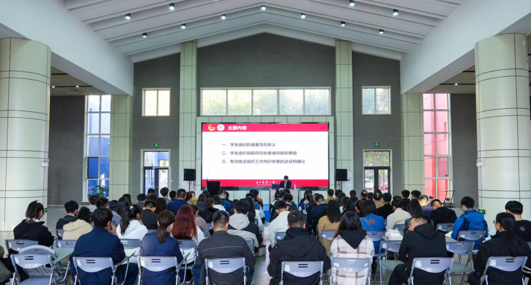 10月18日下午,我校团学组织建设、学生干部培养专题培训班开班式在梦想小镇连廊大厅举行。校团委书记李卡、校团委副书记焦文静、校院各级学生组织指导教师80余人参加了培训班开班式。