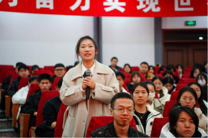 胡国桥以“让青春在奋斗中闪光”为题,围绕青春与奋斗的联系,结合自身40年戎马生涯,讲述了从校园投身绿色军营,在南疆战场坚守奋斗的故事。他表示,军人要将“奋斗精神”这一红色基因融入血液,在祖国最需要的时刻挺身而出,扛起为国奉献的使命担当。他勉励青年学子将个人理想融入国家发展,勇担时代使命,淬炼优秀品格,在新时代新征程中拼搏进取,用奋斗书写最闪亮的青春答卷。活动中,胡国桥与现场学生交流互动并赠书留念。