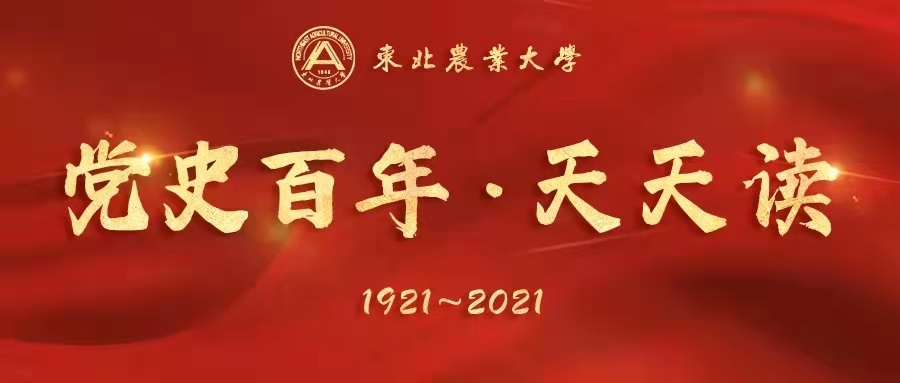 为迎接中国共产党成立100周年,东北农业大学校团委特别推出《党史百年·天天读》栏目。本栏目将通过丰富的历史文献,翔实记录党带领人民不懈奋斗的光辉历程,集中展现党和国家主要领导人的重要论述和理论观点,系统反映党的思想理论创立、发展和完善的历史进程。