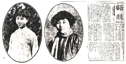 左为《中国青年》创刊号,中为《中国青年》主编恽代英和肖楚女(右)