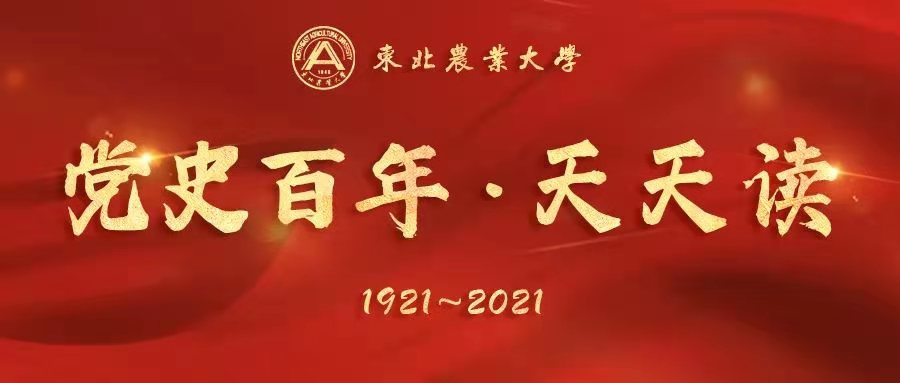 为迎接中国共产党成立100周年,东北农业大学校团委特别推出《党史百年·天天读》栏目。本栏目将通过丰富的历史文献,翔实记录党带领人民不懈奋斗的光辉历程,集中展现党和国家主要领导人的重要论述和理论观点,系统反映党的思想理论创立、发展和完善的历史进程。