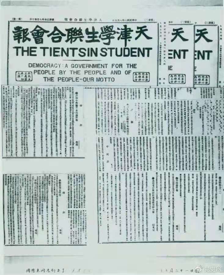 1919年7月21日,周恩来任主编的《天津学生联合会报》创刊。刊名下用英文写着“民主:一个民有、民治、民享的政府——我们的箴言。”