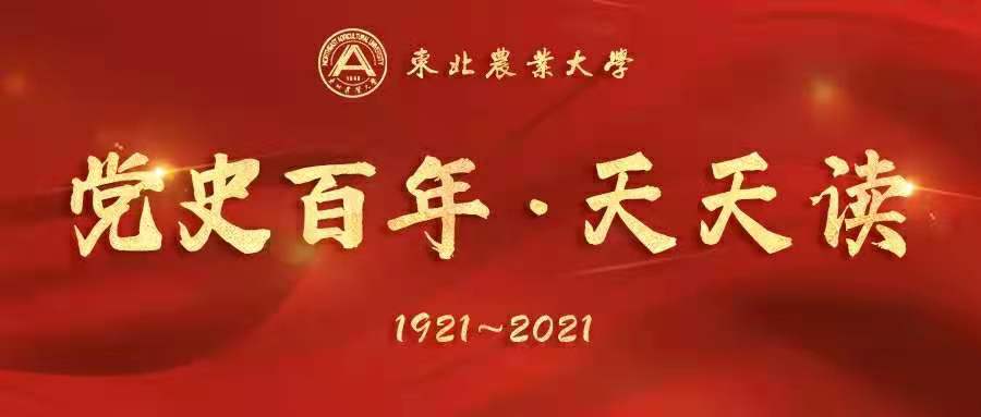 为迎接中国共产党成立100周年,东北农业大学校团委特别推出《党史百年·天天读》栏目。本栏目将通过丰富的历史文献,翔实记录党带领人民不懈奋斗的光辉历程,集中展现党和国家主要领导人的重要论述和理论观点,系统反映党的思想理论创立、发展和完善的历史进程。