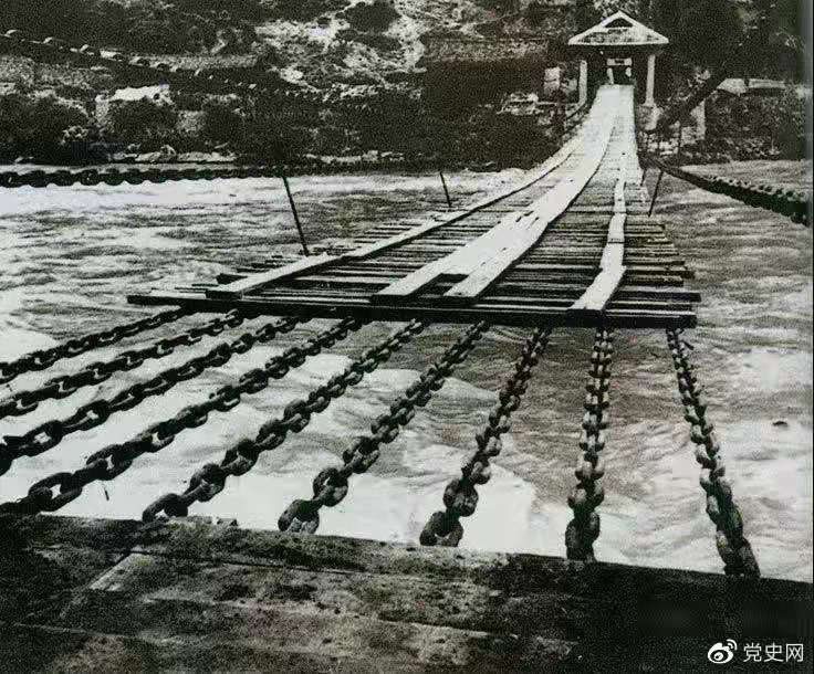 1935年5月29日,中央红军左纵队先头部队在泸定桥西头发起夺桥战斗,胜利抢占大桥。图为泸定桥。