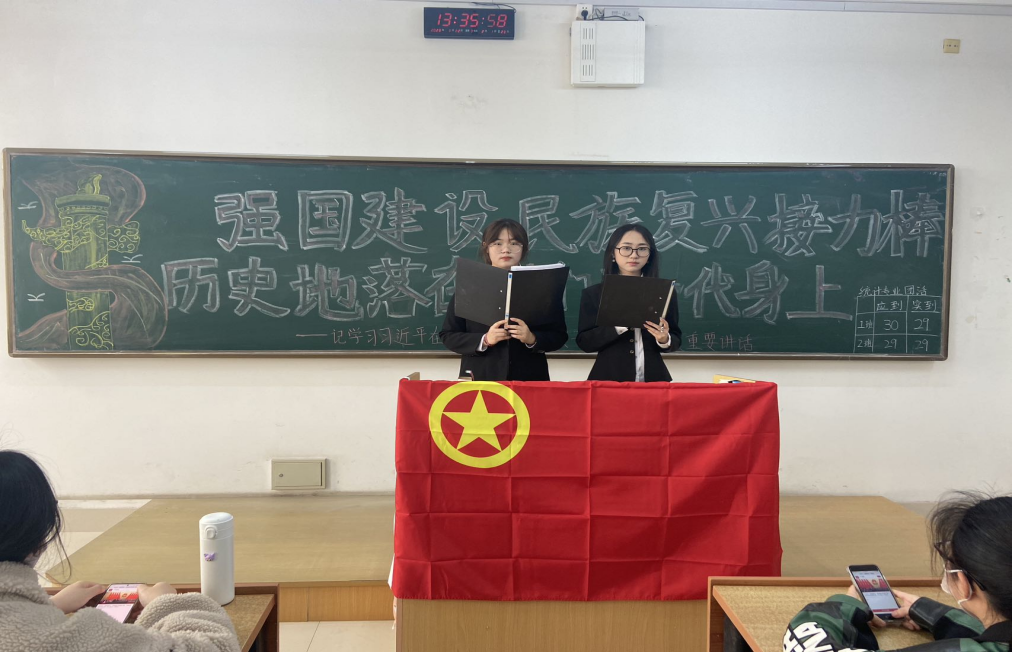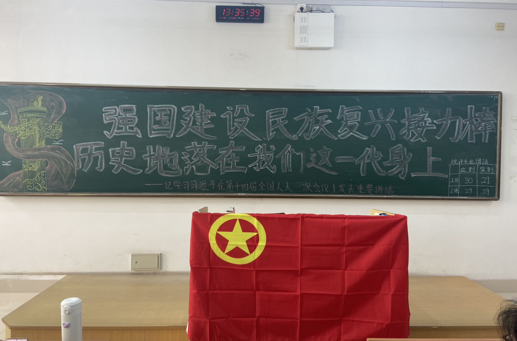各团支书带领同学们认真学习习近平总书记关于强国建设讲话的背景及内容,深入学习习近平主席在十四届全国人大一次会议闭幕式上发表重要讲话的意义,组织同学们讨论并思考我们这一代人身上背负的重任,对于新时代发展我们青年应该具备什么精神,面对挑战应该怎么做。并带领同学们分享自己的认识和理解,畅谈未来及发展方向。