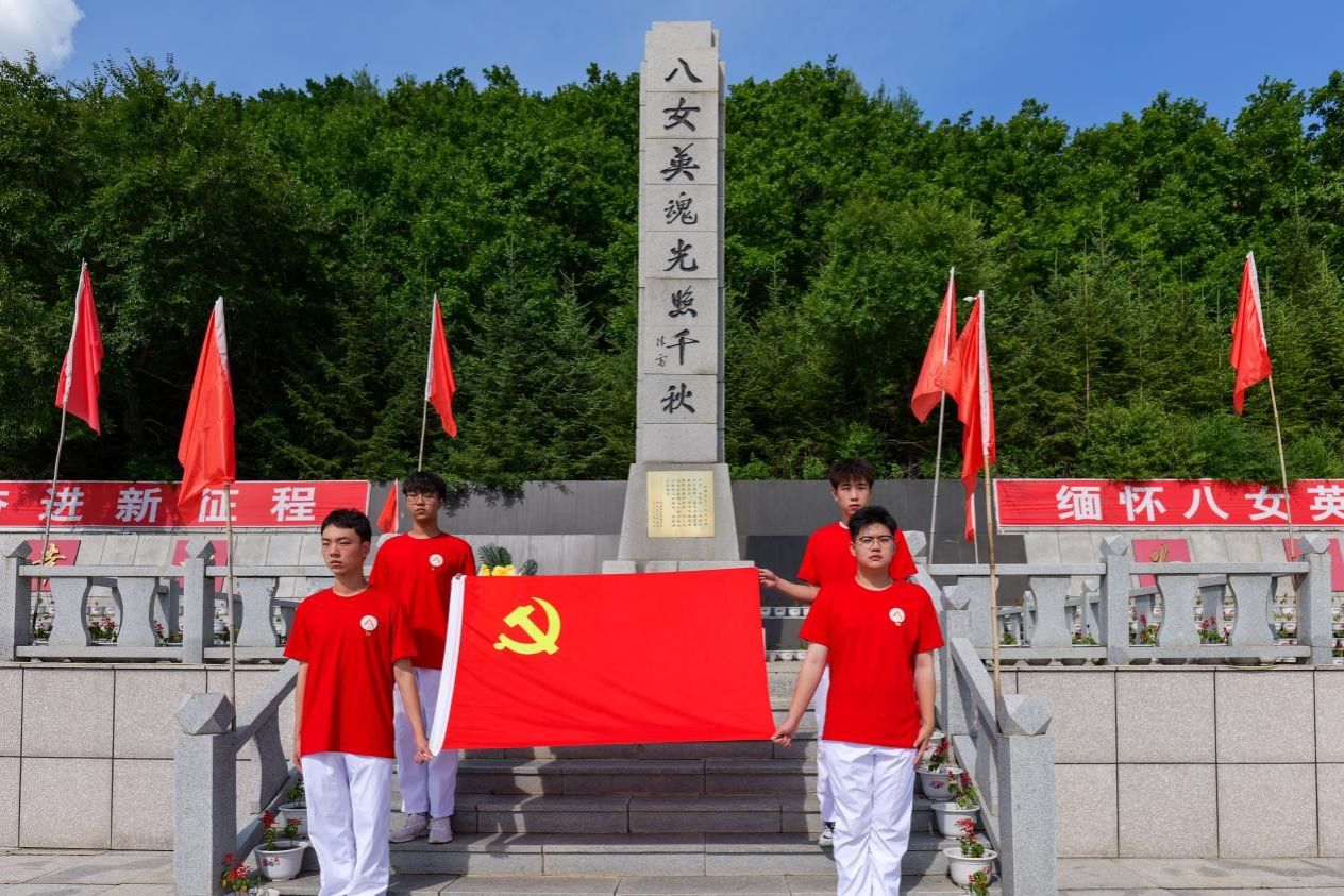20日下午,我校师生集体参加了红色主题教育活动。在林口县文创产业园开展了调研活动,随后在“八女投江”遗址纪念碑广场开展了红色教育主题活动。全体成员瞻仰纪念碑,学生党员代表向纪念碑敬献花篮,全体党员在校团委书记李卡的带领下重温入党誓词。