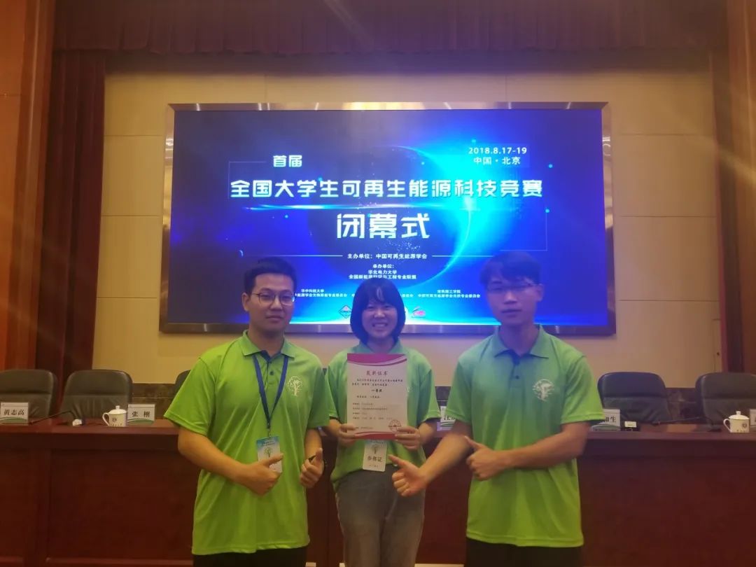 首届大学生可再生能源科技竞赛一等奖(第3人)