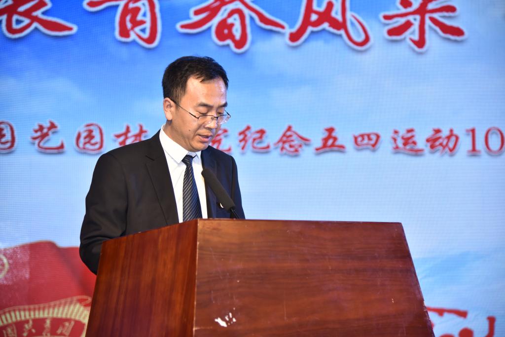 学院党委书记王豫龙首先致辞。他向此次受到学院表彰的集体和个人表示祝贺,向全院共青团员表示诚挚的节日问候,并号召青年学生继承弘扬“爱国、进步、民主、科学”的“五四”精神,牢固树立“一心一意听党话、坚定不移跟党走”的坚定信念,把个人的理想抱负与实现中华民族伟大复兴的中国梦相结合,在爱国、励志、求真、力行的生动实践中,当好新时代中国特色社会主义事业的合格建设者和可靠接班人。