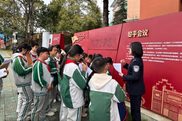 步入校园内的长征文化长廊,孩子们仿佛穿越时空,回到了那段波澜壮阔的岁月。通过图文展板和志愿者的生动讲述,重温红军长征的足迹,感悟革命先辈坚定的信仰与不屈的意志。