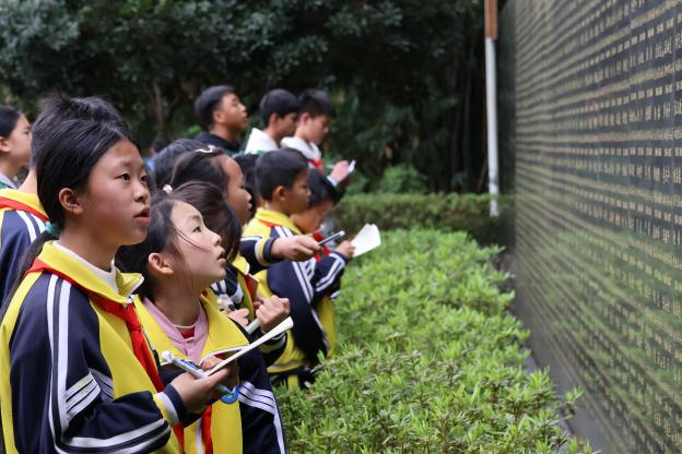 苍松翠柏掩映下,贵州公安英烈墙格外肃穆。孩子们整齐列队,聆听英烈们为守护平安献出生命的感人事迹。英雄不曾远去,精神永远流传,孩子们深刻体会到平安生活背后的坚守与奉献,爱国情怀与责任意识在心中悄然扎根。