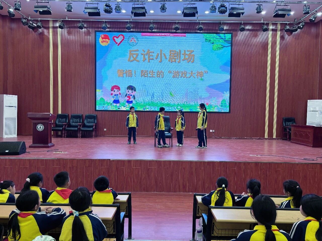 为让反诈宣传更具吸引力与教育意义,志愿者与孩子们一起精心创排反诈主题短剧《警惕!陌生的“游戏大神”》《中奖的“陷阱”》。结合未成年人易遭遇的诈骗场景,引导学生进行角色扮演,在实践中细致揣摩人物心理、熟悉诈骗流程、牢记应对方法。鲜活的场景、贴近日常的剧情,引得在场学生认真观看、频频共鸣,在轻松有趣的氛围中认清诈骗手段、牢记防范要点。通过沉浸、体验的宣传方式,让反诈教育更鲜活、更深刻、更有温度。