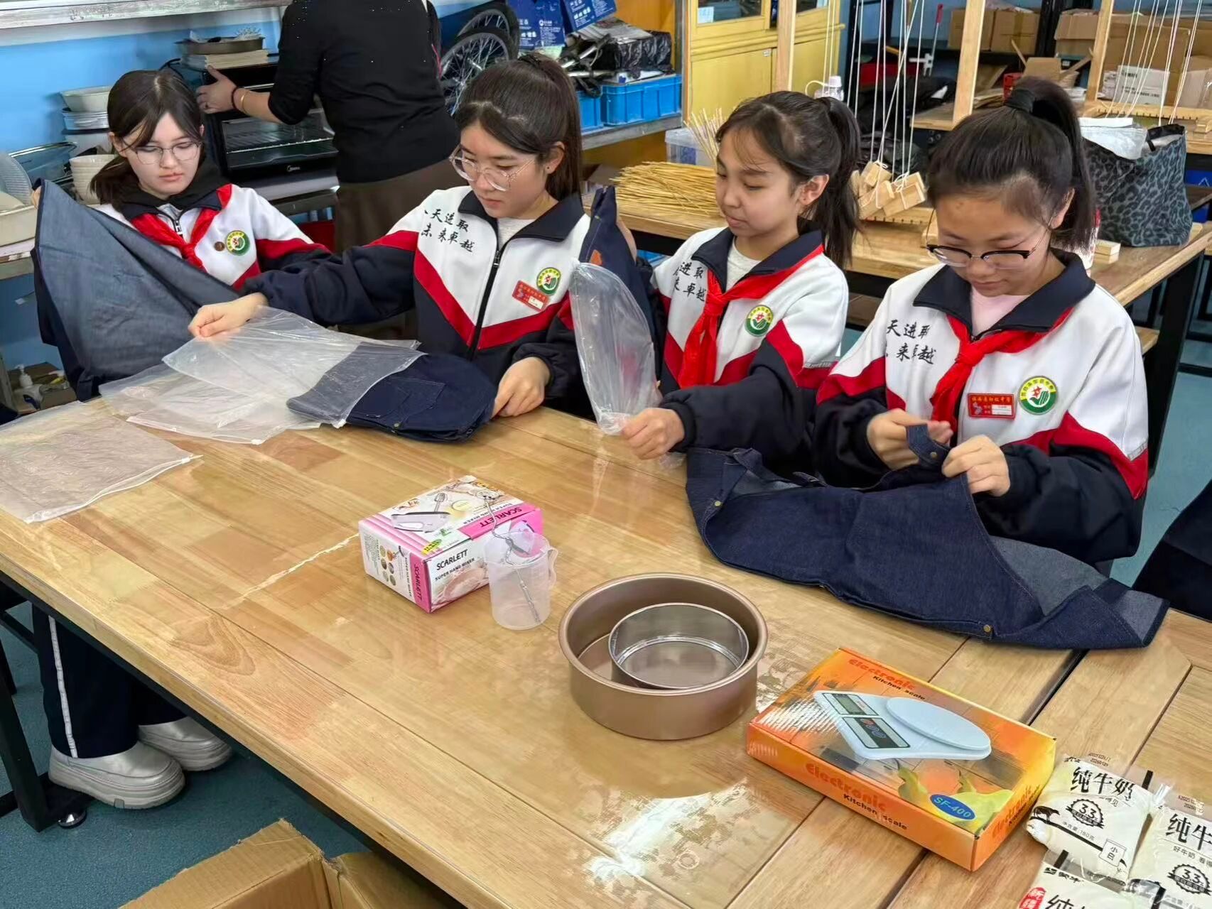 讲解结束后,烘焙实践正式开始。学生分组协作、明确分工,依次完成食材称量、混合搅拌、塑形装盘等步骤,全程专注投入。