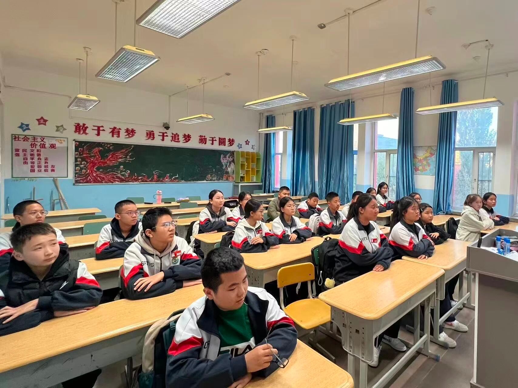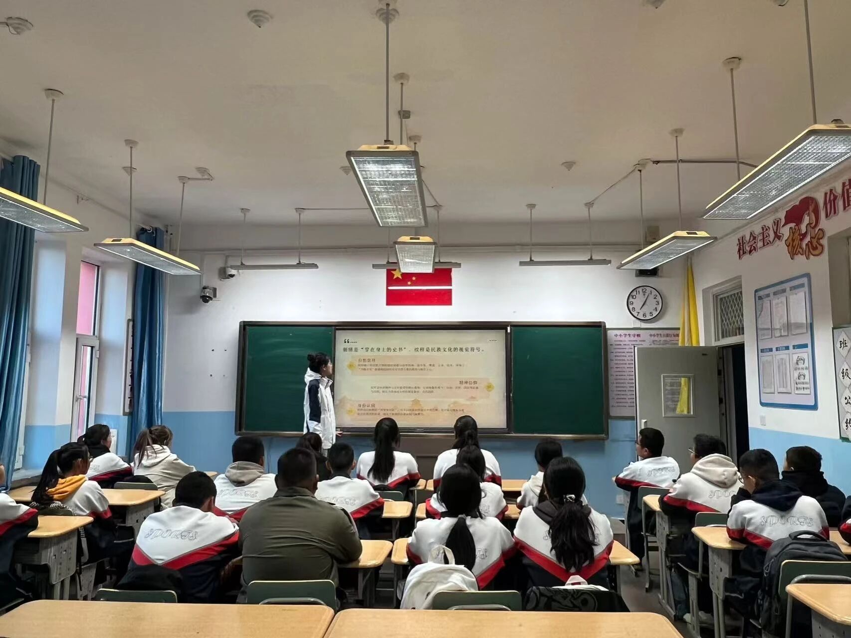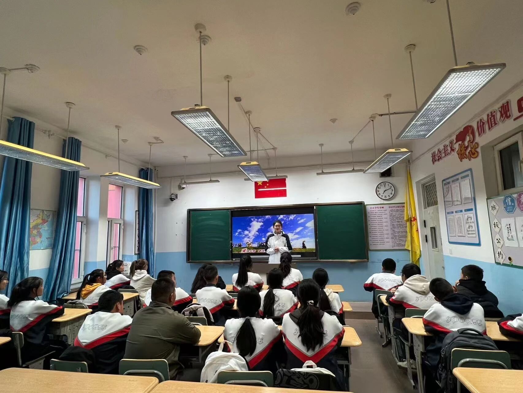 为深化民族团结教育,增强新疆青少年对中华文化的认同,铸牢中华民族共同体意识。近日,东北农业大学第十二届研究生支教团新疆福海服务队面向福海县初级中学的同学,开展“石榴籽课堂”系列特色课第二期——《指尖绽放的民族花》。