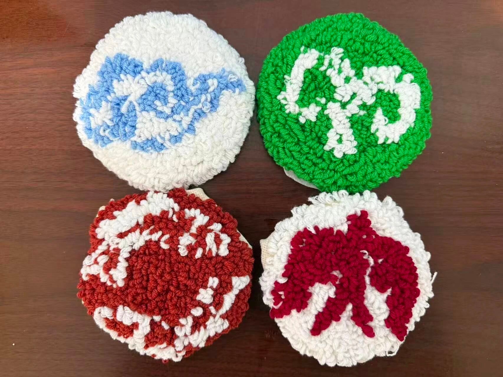 理论学习后,课程进入实践操作环节。研支团成员组织开展刺绣技能教学,师生配合共完成四件刺绣作品。其中三件作品分别以哈萨克族羊角纹、满族云纹、蒙古族哈木尔纹为核心元素,生动还原民族纹样的经典韵味;另有一组同学创新设计思路,将三种民族纹样巧妙融合于同一作品中,在传承传统美学的同时,融入青少年对民族文化的创新理解。