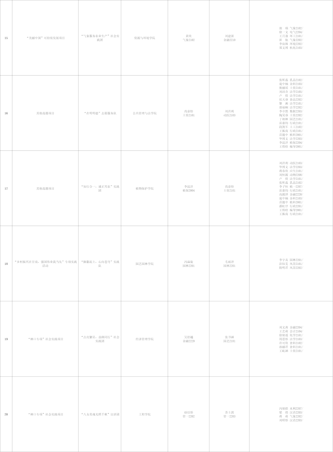 20支团队获得校级一等奖
