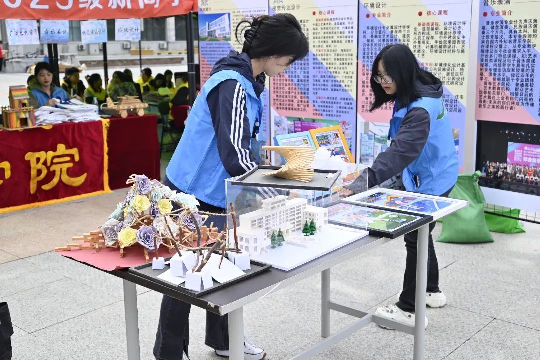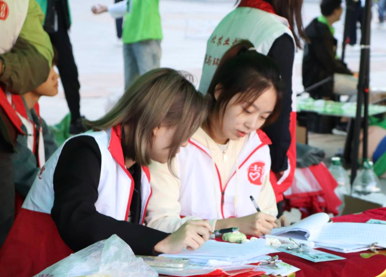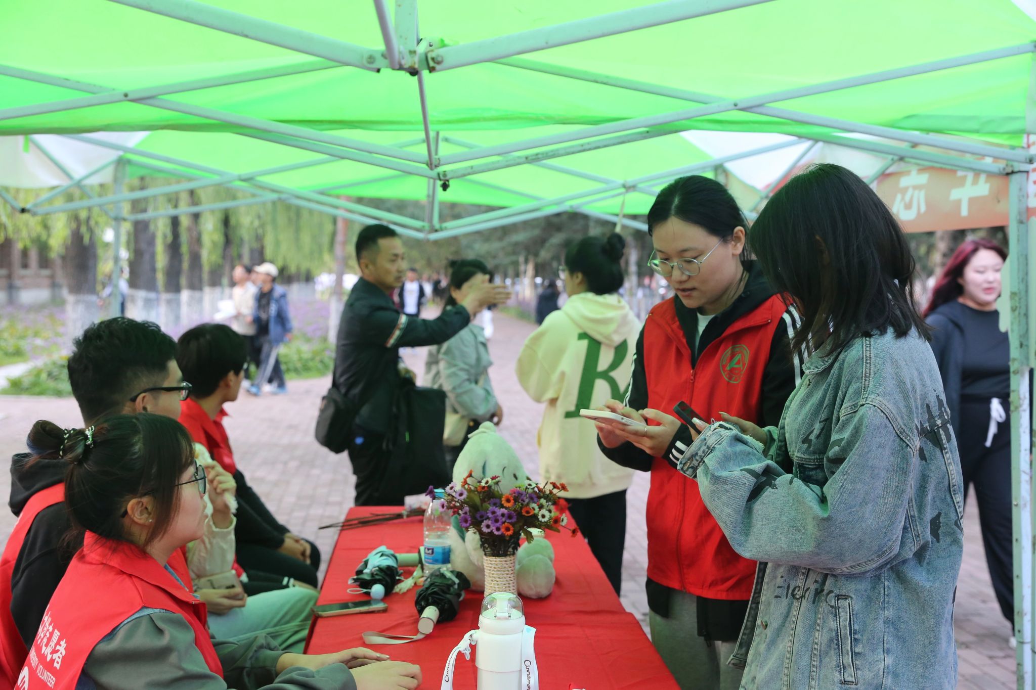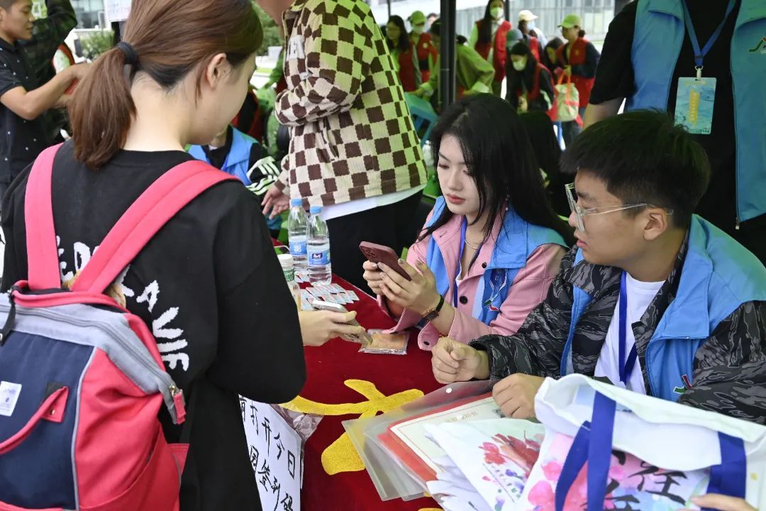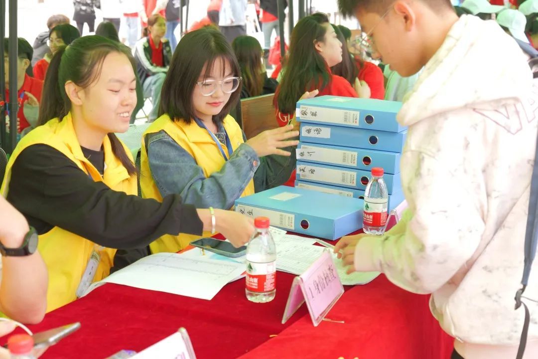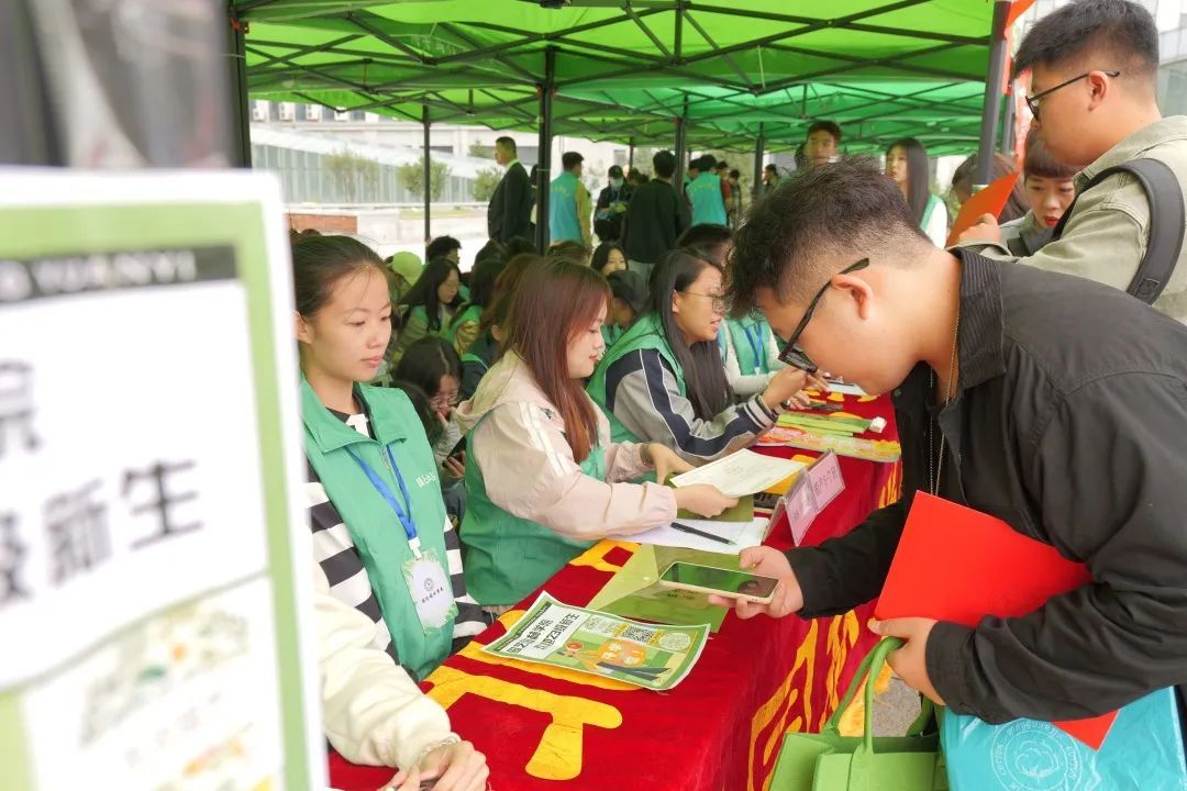 帐篷、横幅、各学院标识映入眼帘志愿者引导大家有序排队