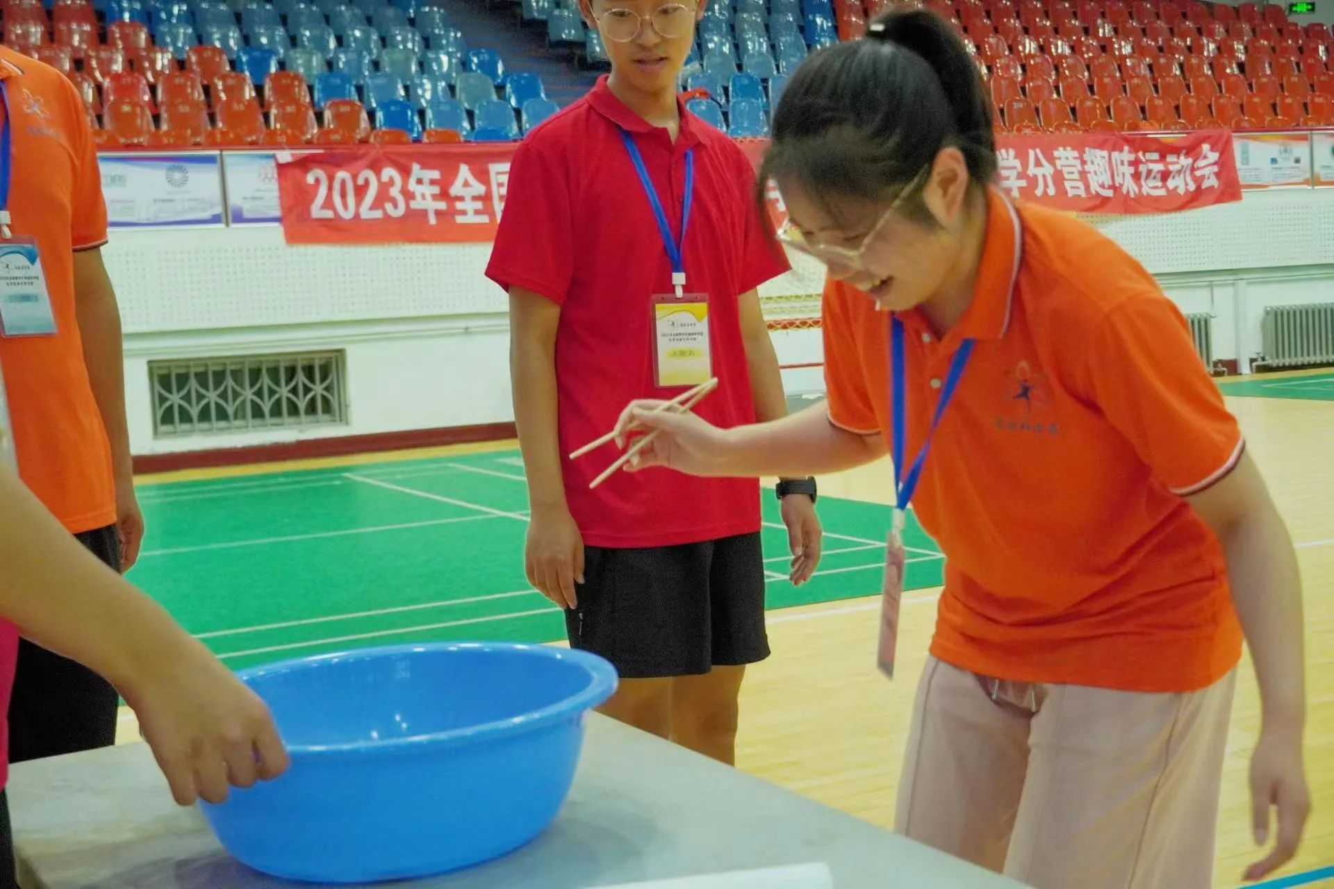 在一天精彩充实的科学营之旅后,营员们再次齐聚体育馆,点燃夏日激情,挥洒青春汗水。