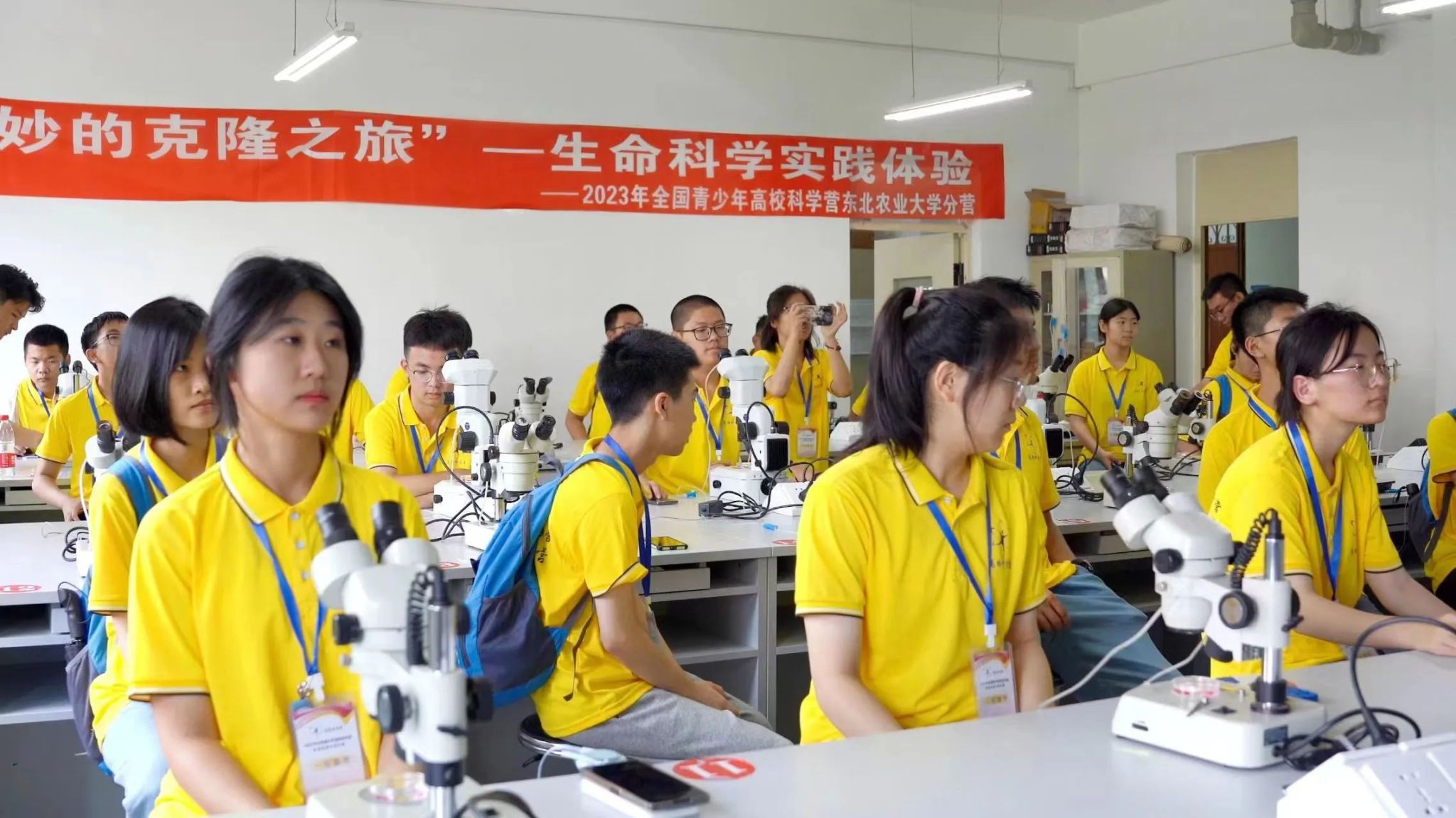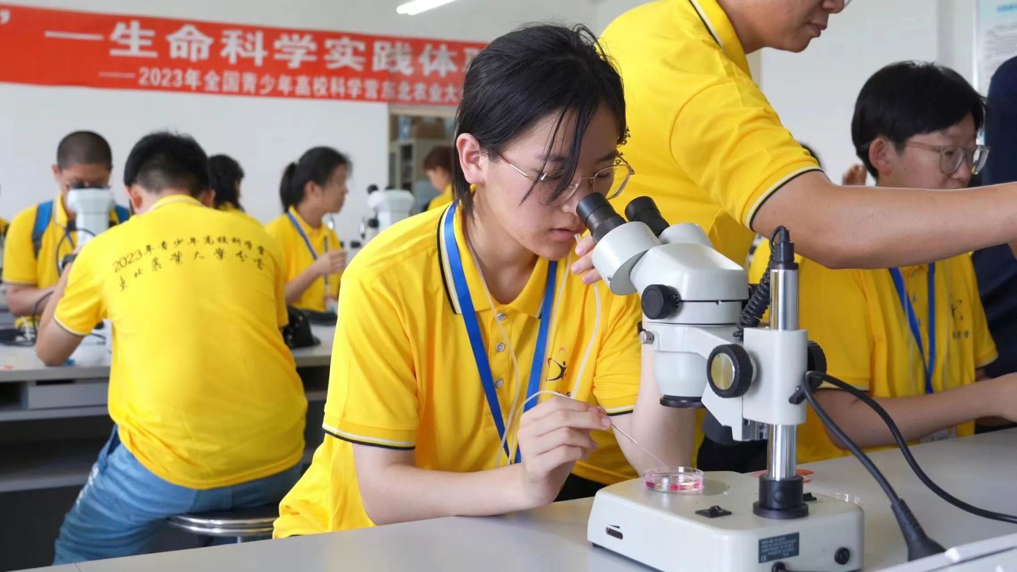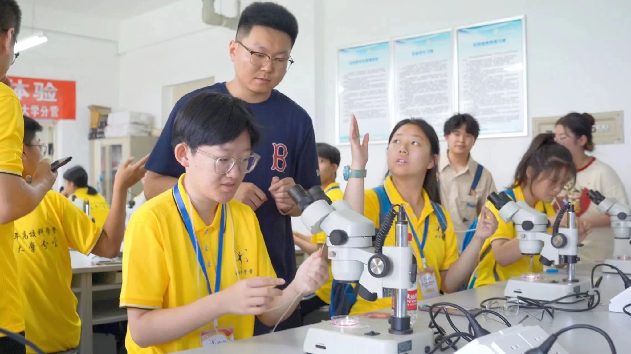 随后,营员们前往实验楼进行母细胞转移实验。在张宇霆老师的讲解与指导下,营员们陆续动手操作,近距离感受科学的魅力。