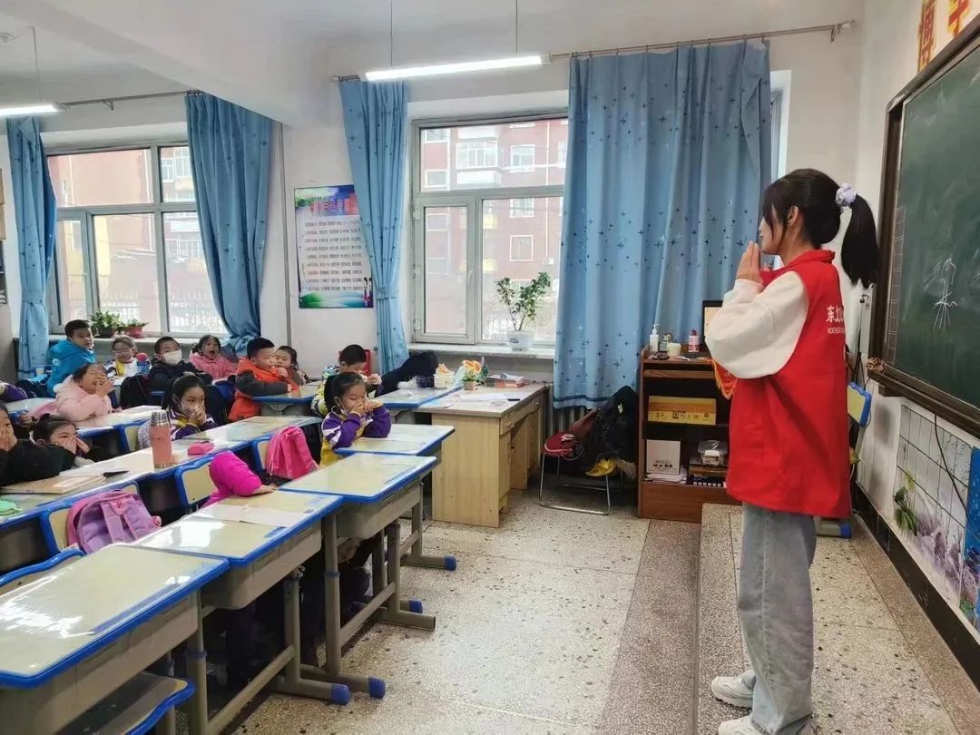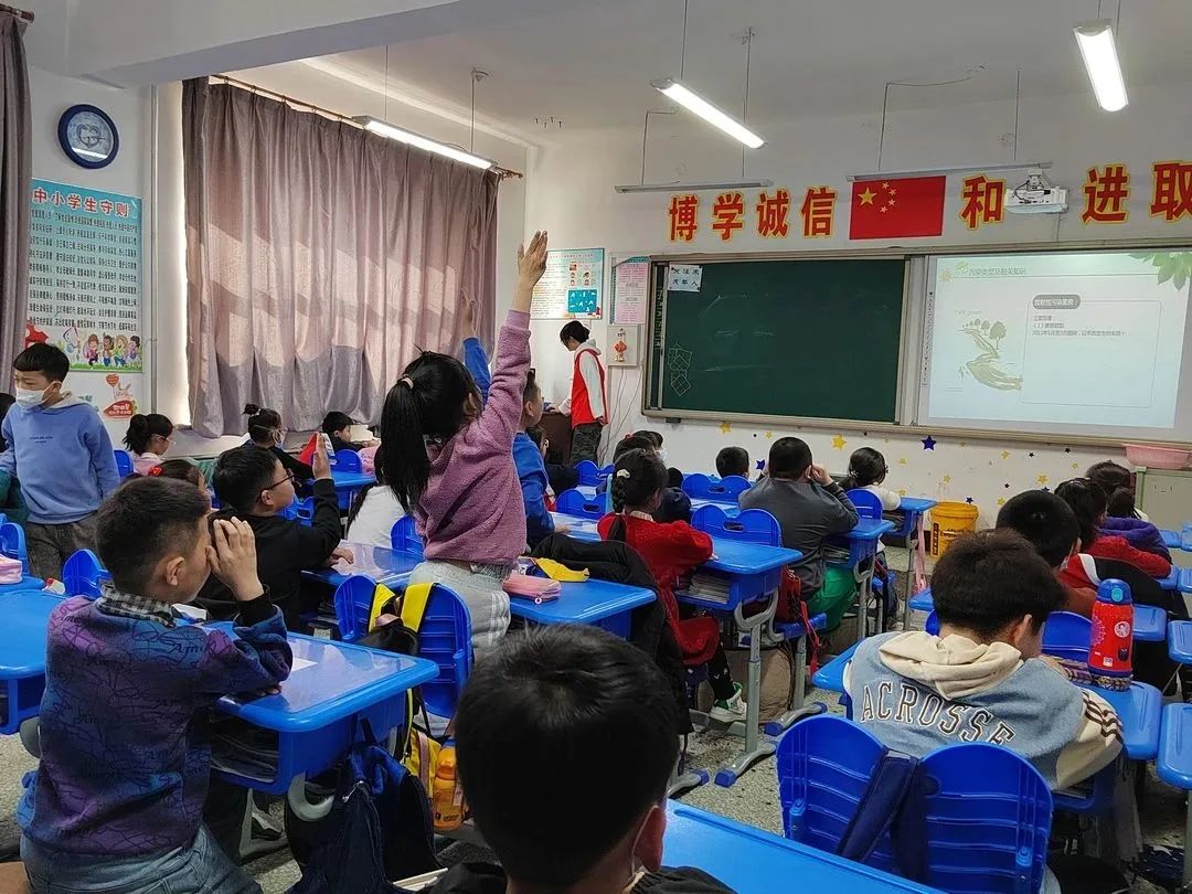 “大手拉小手·绿色支教”线下支教志愿服务活动,由校青协工作人员组织志愿者通过PPT讲解、开展游戏环节等形式向孩子们普及绿色环保知识,让孩子们在学习课业知识、提升自我的同时认识环保、走进环保,在快乐中感受环保知识的熏陶。