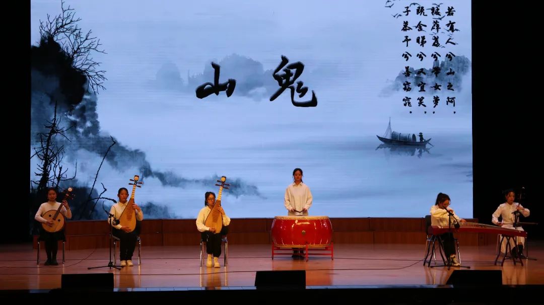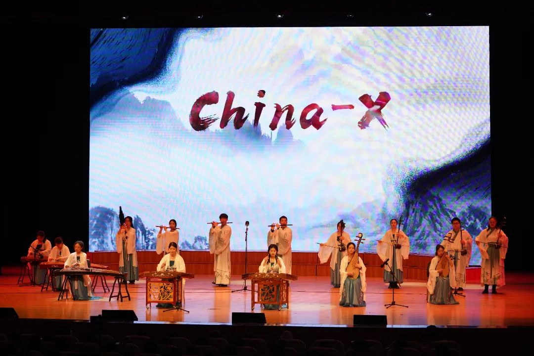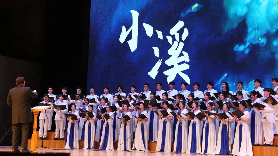 演出上半场带来了两曲民族管弦乐合奏《象王行》《山鬼》,将独特的东方美展现的淋漓尽致,娓娓道来历史的经典。混声合唱《在水一方》歌声宛转悠扬,《如愿》唱出昔日父辈的热爱与期盼,更表现出青春少年的家国情怀。古风电音结合式纯音乐《China- X》将中国风完美融合在现代电音中,展现了新时代的伟大中国正以崭新活力矗立在世界舞台中央。