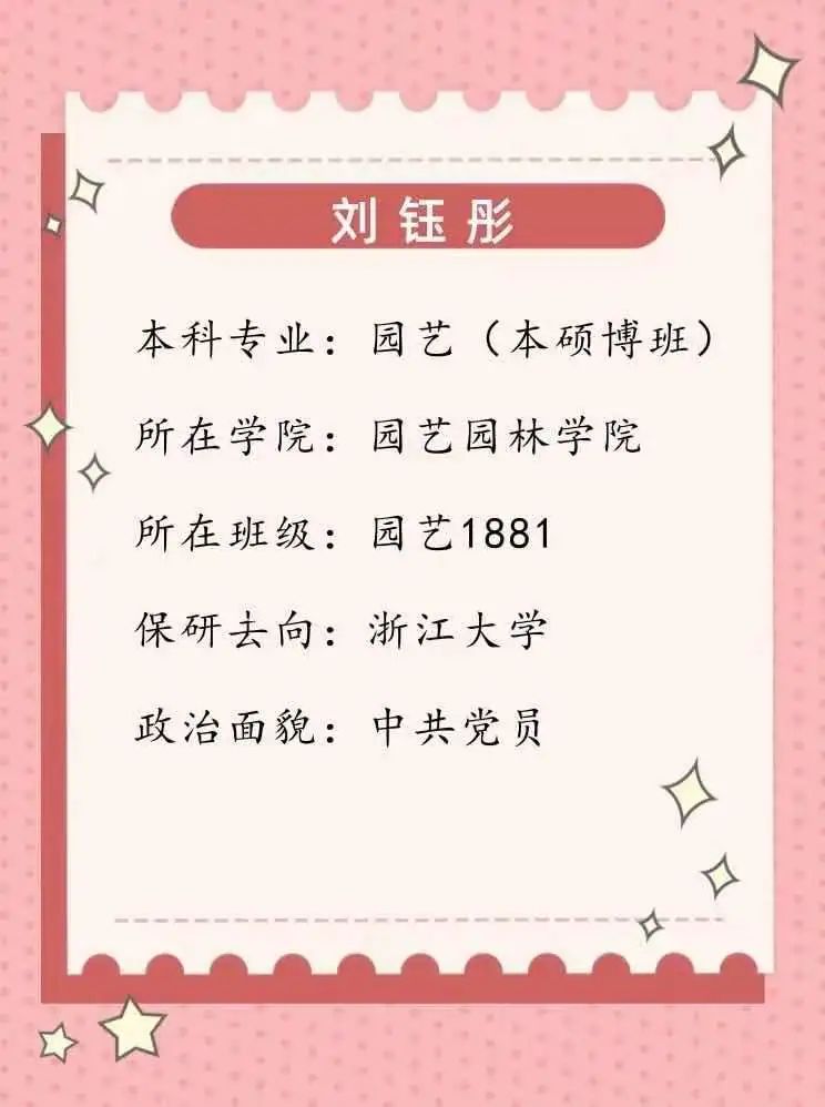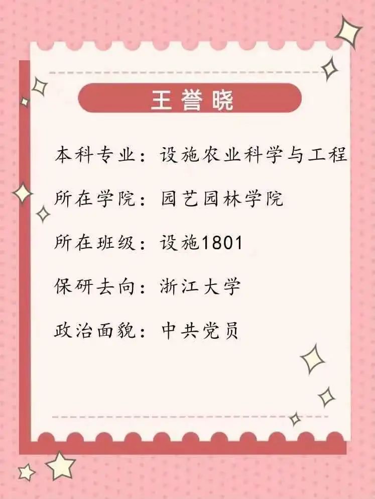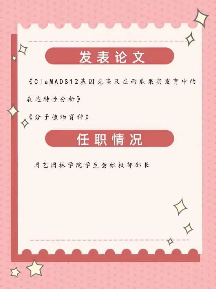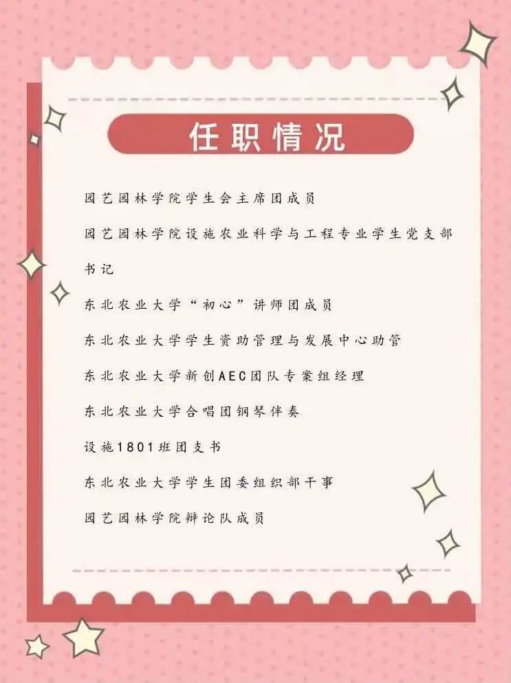 大学四年,她们的梦想始于相同的地方——园艺园林学院,专业的知识铺垫出成功的道路;长路漫漫,她们都曾有过在学生会任职的经历,一次次付出与历练不断丰富着生活;心怀希望,她们不惧坎坷与艰辛,成就在履历上闪闪发光。