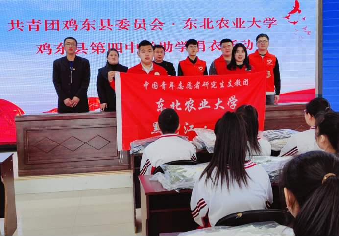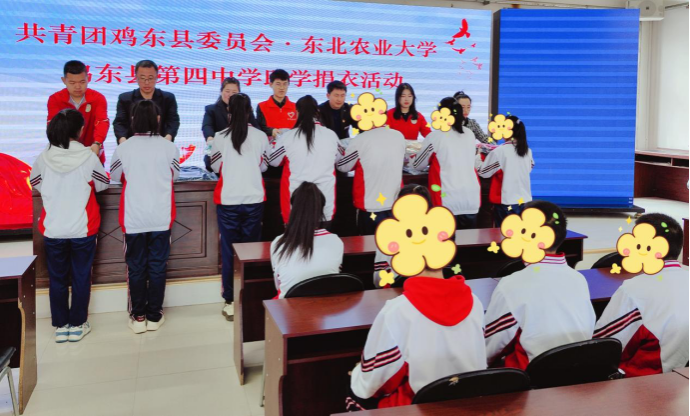4月8日上午,在鸡东县第四中学开展了助学捐衣活动,鸡东团县委、鸡东县第四中学教师、我校第十届研究生支教团鸡东服务队队员共同为11名建档立卡的贫困学生发放了衣物,鸡东县第四中校长袁国忠对我校和鸡东团县委表达了感谢,并勉励孩子们要常怀一颗感恩之心,把东农师生的关爱化作发奋学习、立志成才的动力,将来学有所成就是对爱心人士最好的回报。