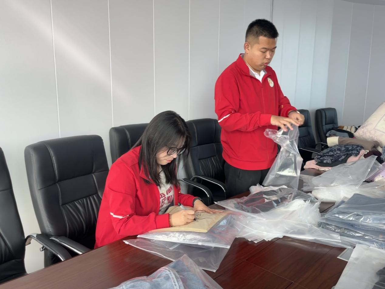 为保证爱心捐赠活动的顺利进行,今年3月我校研究生支教团在收到募捐衣物后及时进行了整理打包,第一时间发送到了鸡东县,我校第十届研究生支教团鸡东服务队在团县委的指导下按照捐赠衣物的款式、尺码进行了分类整理和收纳包装。
