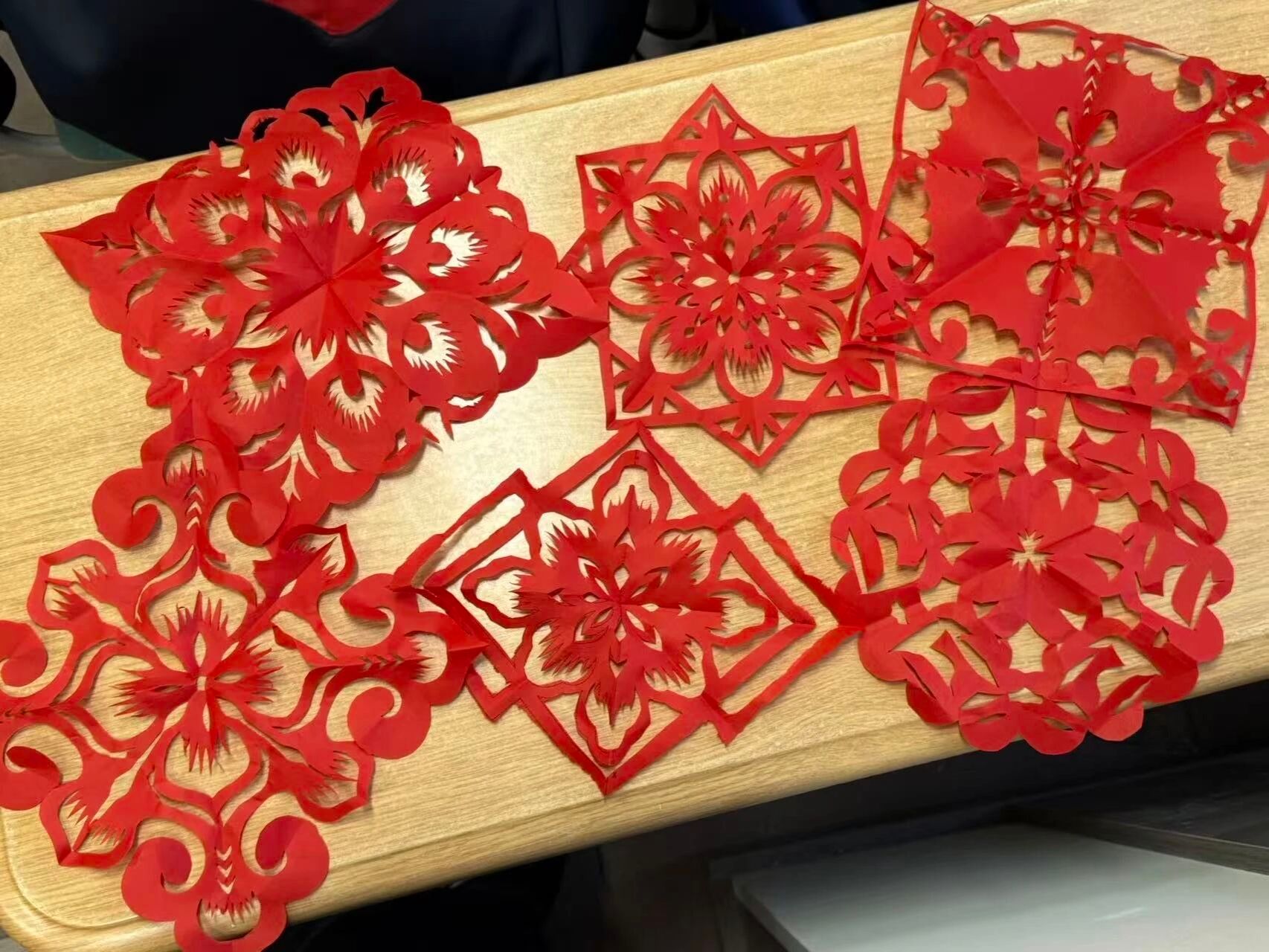 活动中,研支团成员围绕非物质文化遗产内涵、剪纸技艺起源发展与艺术特色展开讲解,结合石榴、同心结等纹样阐释民族团结寓意,推动非遗传承与“石榴籽精神”深度融合。实践环节,研支团成员现场教授折纸、剪刻技巧,同学们以小组协作开展“民族团结” 主题剪纸创作,在动手实践中感受非遗魅力、凝聚团结共识。