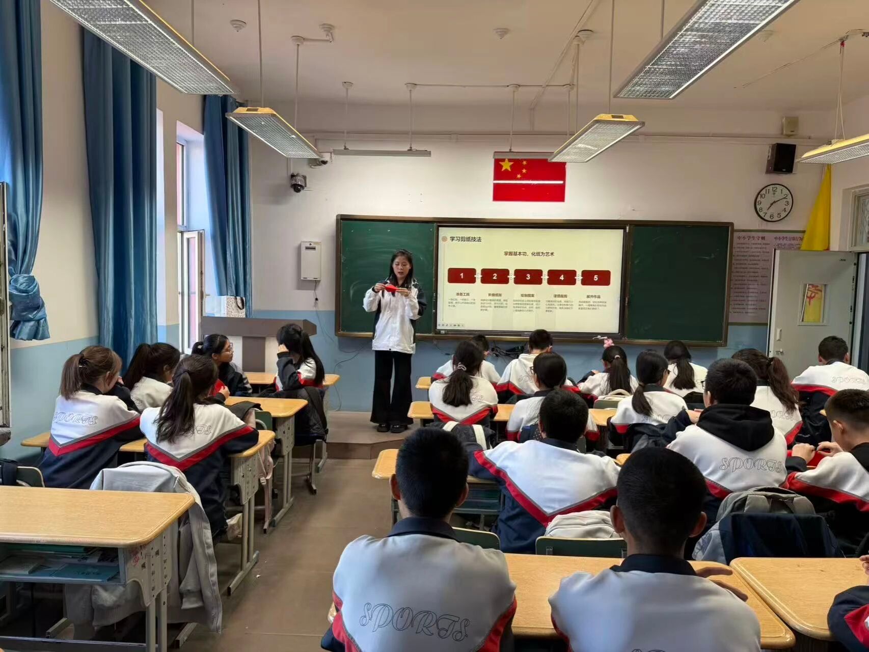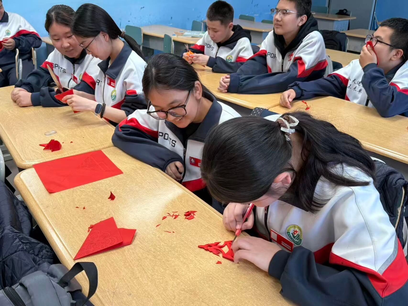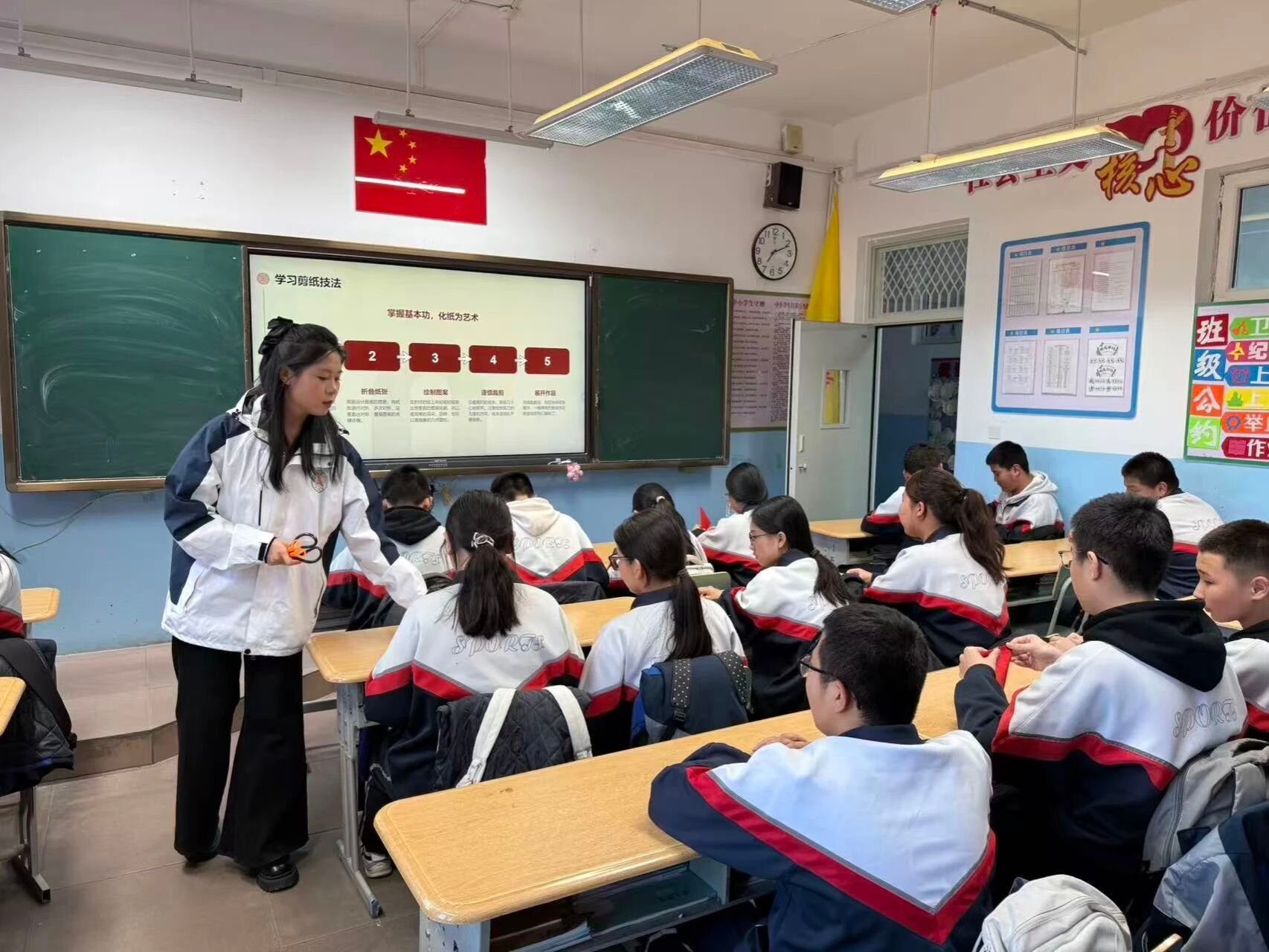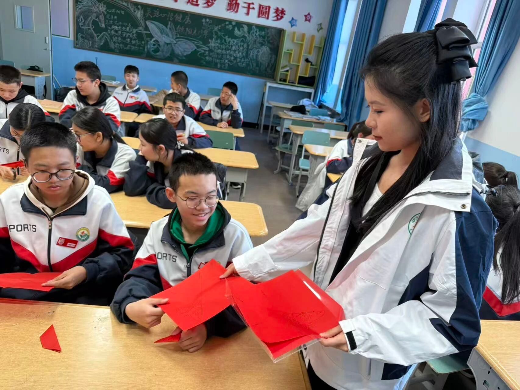 为弘扬“石榴籽精神”,铸牢青少年中华民族共同体意识,4月2日,东北农业大学第十二届研究生支教团新疆福海服务队面向福海县初级中学学生开展“石榴籽课堂”第十一期—《剪纸中的非遗传承》。