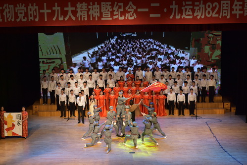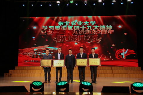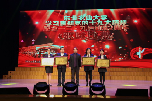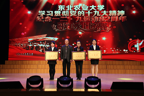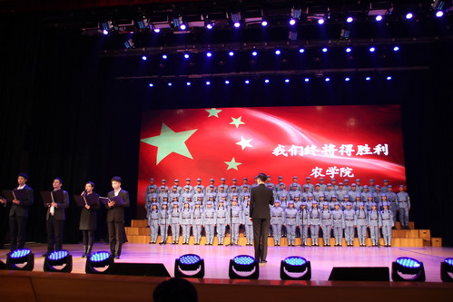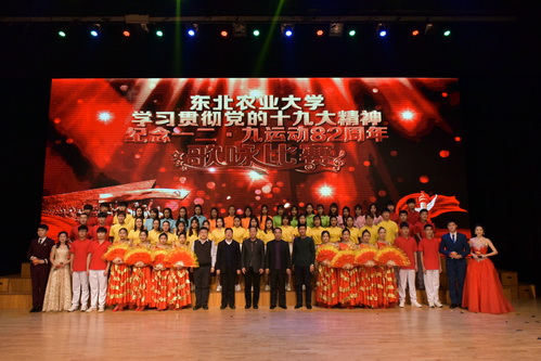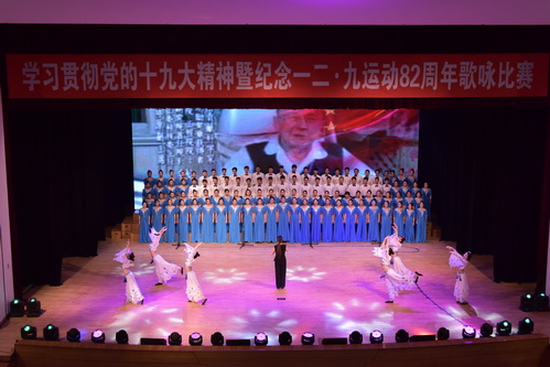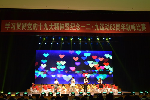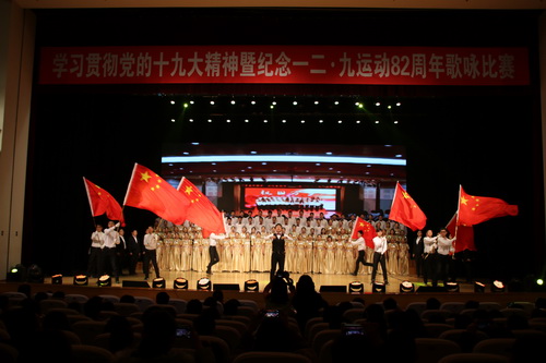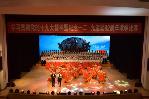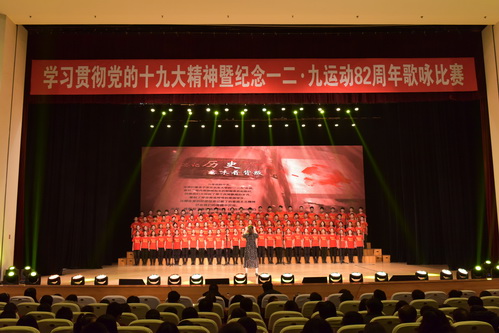 12月6日晚6时,我校在音乐厅隆重举行学习贯彻党的十九大精神暨纪念“一二•九”运动82周年歌咏比赛。校党委副书记马宏坤、陈延良,校党委组织部部长解宗军出席现场并为获奖团队颁奖,宣传统战部、学生工作部、招生与就业指导处、机关党委、保卫处、后勤处等党政机关部门领导,园艺园林学院、动物医学学院、艺术学院、理学院、国际文化教育学院党委书记及各学院党委副书记与1000余名学生代表观看了歌咏比赛。当嘹亮的歌声铿锵响起,振奋人心的旋律再次荡漾在莘莘学子心中,八十二年前的那场爱国学生运动仿佛历历在目,强烈的爱国主义精神澎湃在全场观众心间。