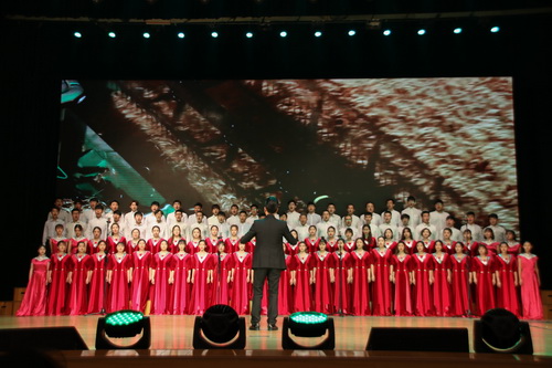 第三篇章中,优美而又空灵的声音回旋在音乐厅上空,这是来自大学生艺术团合唱团的合唱《贝加尔湖畔》,安静的节奏仿佛将聆听者带到贝加尔湖。合唱《国家》通过朴实的曲调展现同学们的爱国热情,这是青年一代的责任与梦想。《中国之梦》则通过别具一格的表现形式奏响了青年学子对国家的热爱。《共筑中国梦》进一步唱响了中国梦的深刻内涵,表达东农学子对党的期冀,以激昂的形式展现时代的跨越。