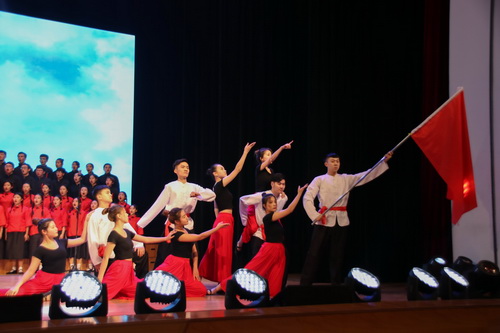 本场比赛以学习贯彻党的十九大精神、纪念一二•九运动82周年为主旋律,分为“不忘初心”、“继往开来”、“奋力前行”三个篇章共15个节目。大学生艺术团舞蹈团的舞蹈《启航》拉开了第一篇章的序幕,演员们整齐的动作和优美的舞姿赢得了场下观众的阵阵掌声。艺术学院合唱《在希望的田野上》以全新的编排在其悦耳的旋律中融入了同学们对国家的祝福,用歌声歌颂国家新时代繁荣富强的盛景。《歌唱祖国》以新颖的表演形式,整齐的着装赢得了台下阵阵掌声。《游击队之歌》,《祖国不会忘记》中同学们用标志的“中国红”色的着装宣誓自己对祖国的热爱。在震耳欲聋的合唱《不忘初心》中学子们高唱党的赞歌,表达对伟大的中国共产党的热忱与忠诚。