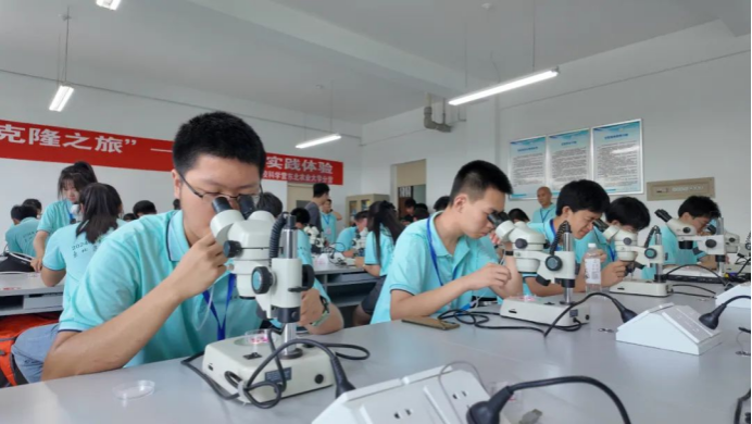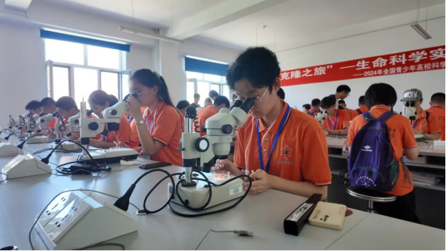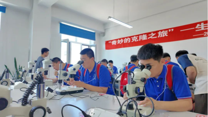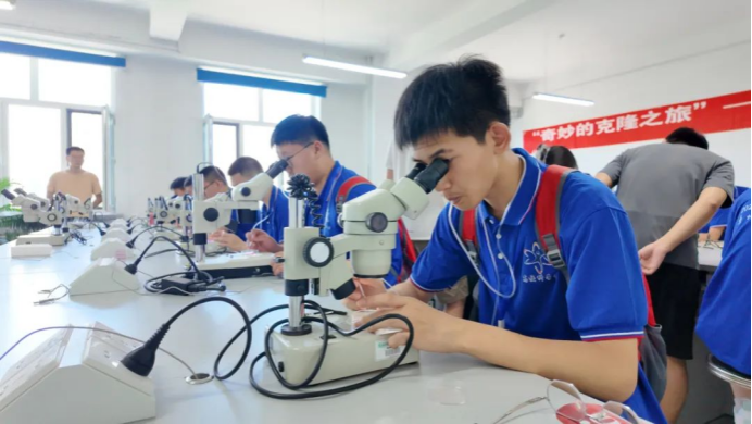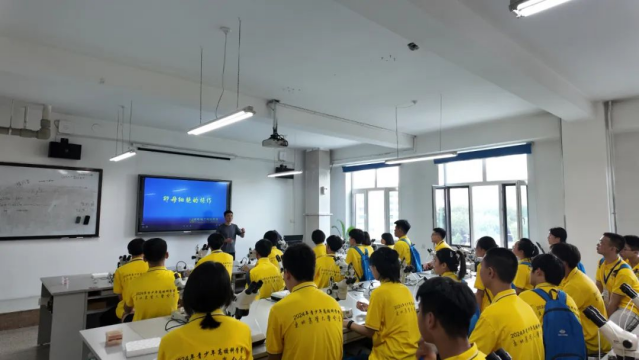 随后,营员们前往实验楼开展实践体验活动。生命科学学院教师张宇霆为营员们讲解母细胞转移实验,并指导营员们动手操作,激发了营员们对生命科学的浓厚兴趣和探索热情。