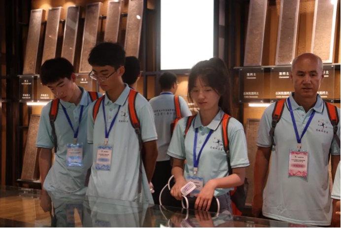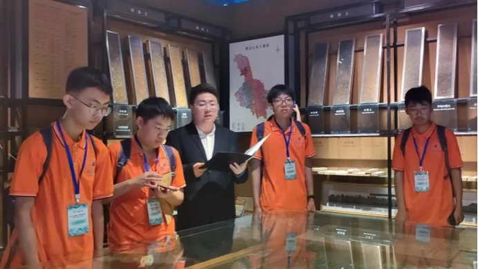 在“寒地土壤探秘”——北方寒地土壤标本观摩活动中,营员们有序参观土壤岩石标本,并在资源与环境学院同学舒天宇的介绍下,深入地了解寒地土壤与矿物的相关知识。