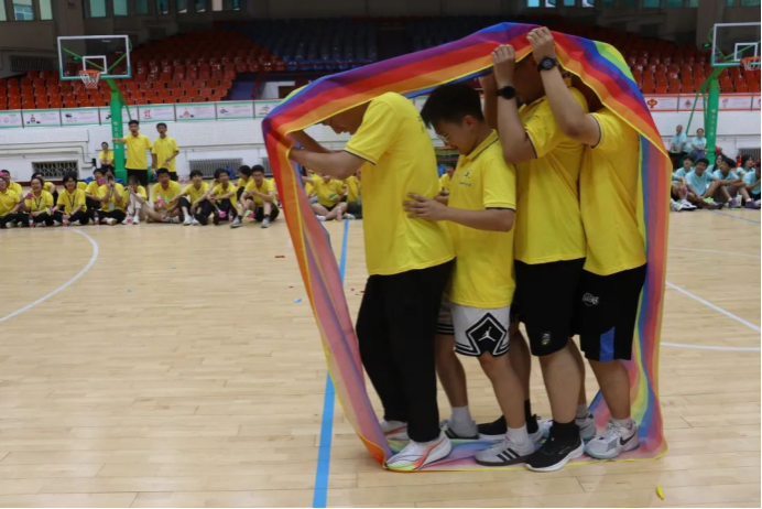 在结束了一天的实践体验后,营员们齐聚体育馆开启趣味运动会。通过分组合作的方式,营员们积极完成比赛项目,展现出强烈的集体荣誉感与团队精神。在这一天充实而精彩的活动中,营员们不仅收获了知识和快乐,更在团队协作中锻炼了自己,为接下来的科学探索之旅注入了满满的活力与激情。