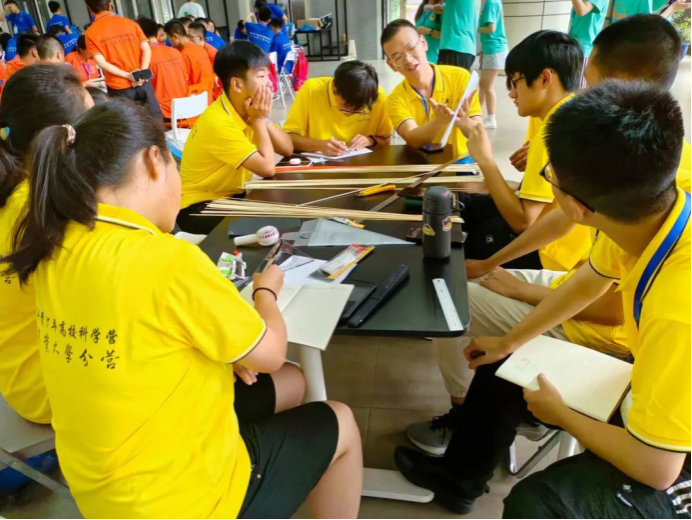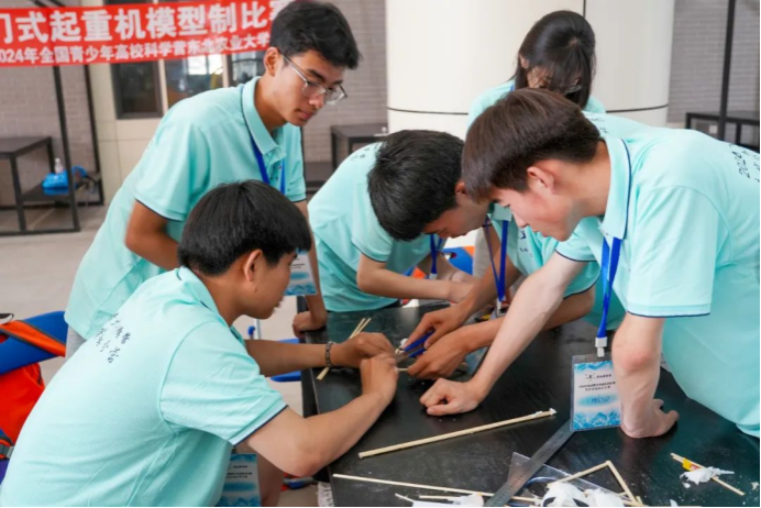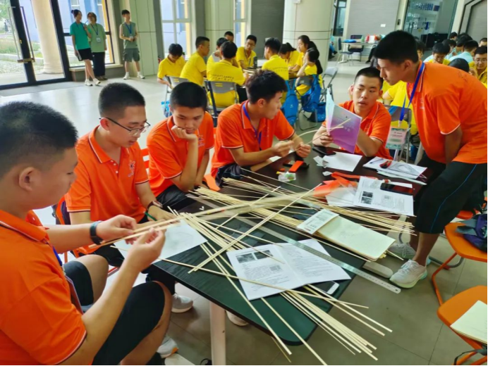 24日下午,龙门式起重机模型制作比赛在梦想小镇大厅举行。水利与土木工程学院教师王洪涛与水利与土木工程学院学生李秋泽指导营员们分组进行模型制作,志愿者协助确保活动顺利进行。此次活动妙趣横生、学乐结合,全面展现我校水利专业在学术研究、科技创新领域的独特之处,有力地增强了营员们的实践操作能力和创新思维能力。