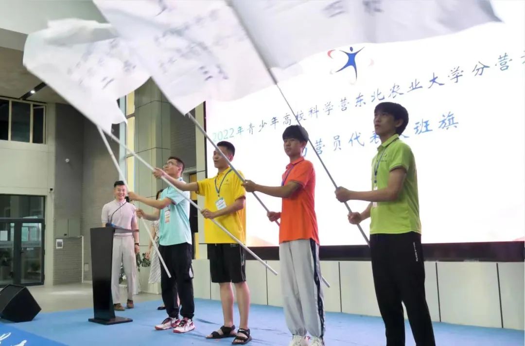 团委副书记高天琦、吕嘉昌为科学营4个班级授旗,全体营员正式开启为期7天的高校科技体验之旅。