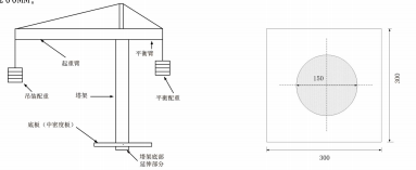 (7)起重臂和平衡臂的配重点位置应设置一根较粗的横梁以方便加载挂钩的安放,横梁和周边构件不能妨碍加载,加载挂钩直接悬挂在横梁中间位置。