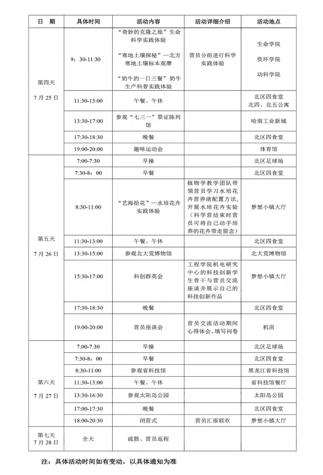 7. 科学营期间,工作人员会统一安排学员洗浴,洗浴地点在住宿寝室楼后,请各位同学统一听从工作人员安排。
