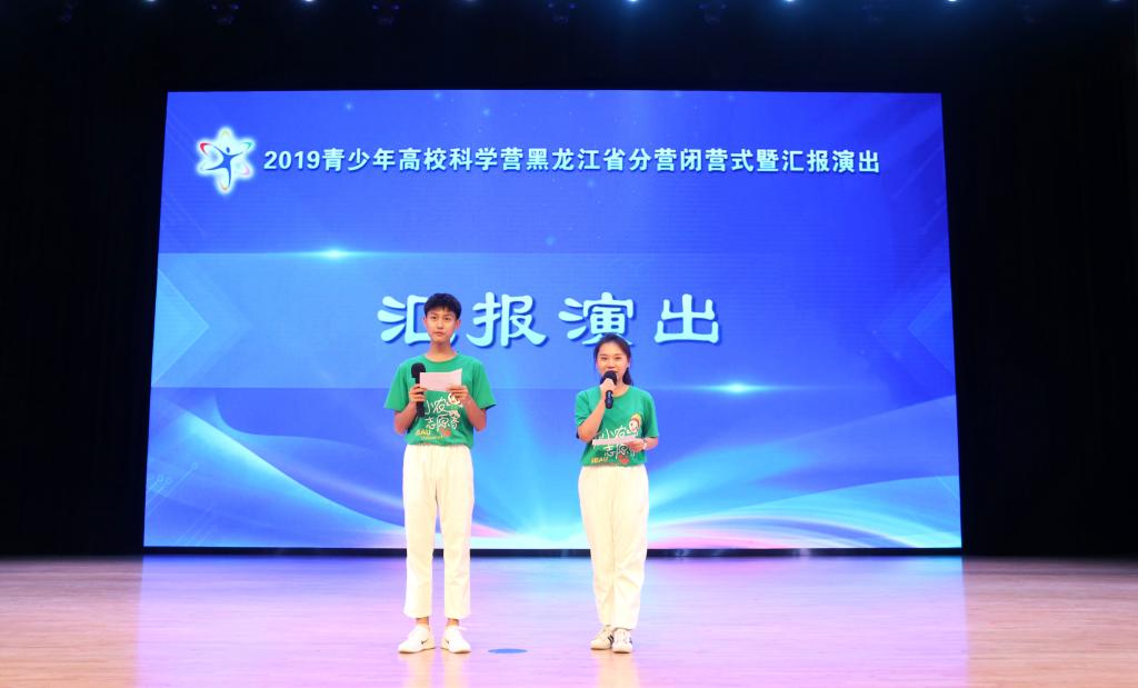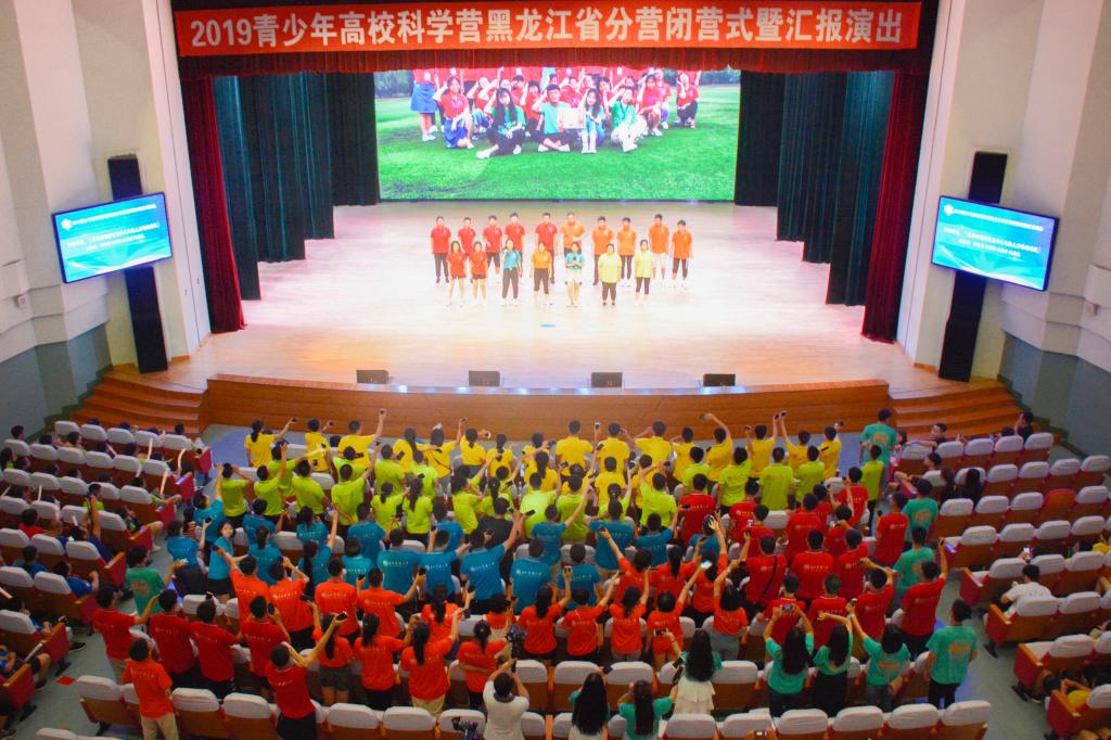 7月22日晚18时,2019青少年高校科学营黑龙江省分营闭营式在东北农业大学音乐厅举行。黑龙江省科普事业中心主任胡国庆、黑龙江省教育厅基础教育二处副处长刘德宏、哈尔滨工业大学团委副书记苗勃然、哈尔滨工程大学团委学生科技创新中心主任尹三井出席本次活动。东北农业大学、哈尔滨工业大学、哈尔滨工程大学相关人员以及来自全国18个省份的600余名优秀青少年科学营师生参加了闭营仪式 。我校团委副书记高天琦主持闭营式。