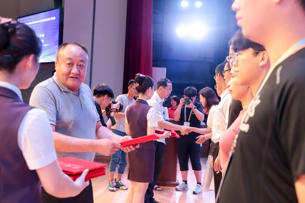 胡国庆、刘德宏为2019年全国青少年高校科学营黑龙江省分营“优秀组织工作者”、“优秀宣传工作者”代表颁发证书。