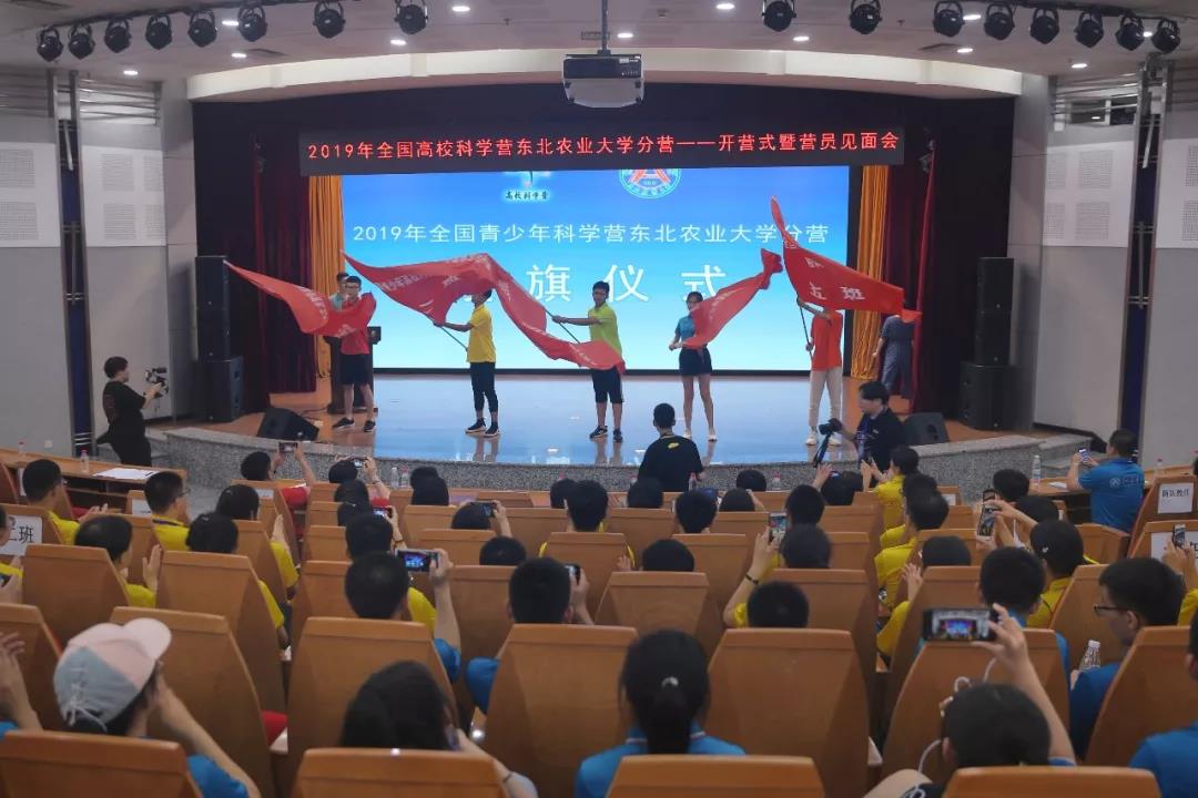 校团委副书记高天琦向各班代表授予班旗,营员们挥舞着手中的旗帜,开营仪式圆满结束。与此同时,2019年青少年高校科学营东北农业大学分营正式启动,营员们的为期七天的科学探索之旅由此开始!
