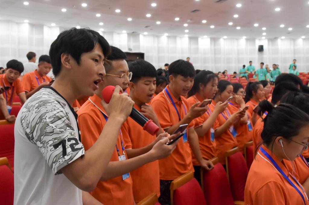 在开营式中,科学营带队教师、随队志愿者纷纷与营员进行见面互动,并用歌曲表达了对营员和教师们的欢迎,祝愿营员们度过一段美好的科技体验之旅。