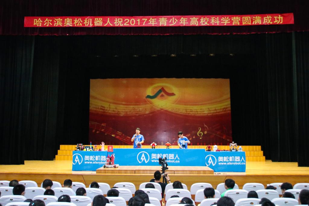 活动开始前,哈尔滨奥松机器人公司为营员们带来了精彩的机器人舞蹈表演。舞蹈结束后,本次活动正式开始。哈尔滨工程大学机电工程工学硕士、“机器人爸爸”于欣龙上台为大家普及了机器人的相关知识,全体营员仔细聆听并认真记录了老师所教授的重点内容。