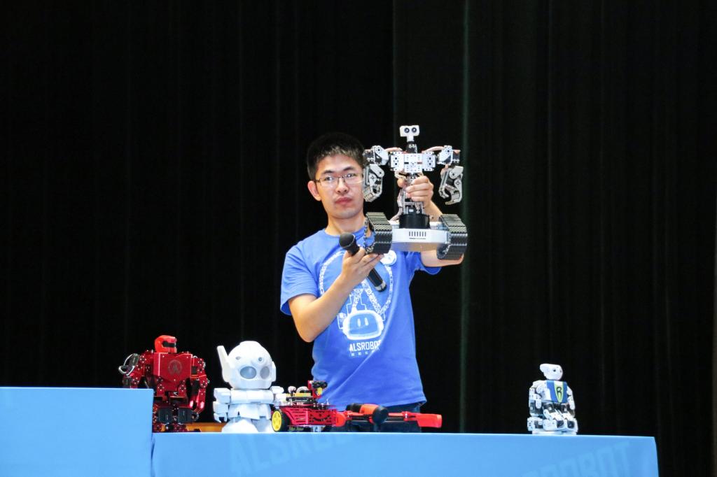 来自哈尔滨奥松机器人公司的解宇晨老师为大家介绍了会场内不同类型的机器人。