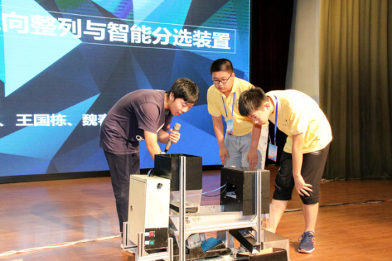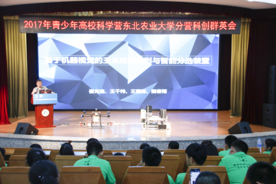 齐森茂、周生杰、殷航、郎继超、魏春雨五位科创界的优秀成员依次上台为大家介绍自己在科创之路上的成长经历以及具有代表性的科创作品。他们表示:在科技创新的路上,没有奇迹可言,必须做好自己的本分工作,才能取得成功。讲座期间,他们详细地讲解了自己的作品,并号召大家投身于科创事业。最后,魏春雨同学向大家展示了玉米整列与智能分选装置,并邀请两名营员上台近距离观察装置,营员们看到装置的运作过程后,纷纷对其智能程度表示惊叹。