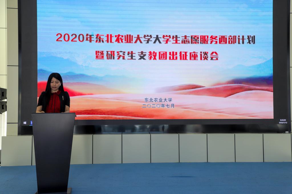 7月13日上午,我校在梦想小镇连廊大厅组织召开了东北农业大学大学生志愿服务西部计划暨研究生支教团出征座谈会。校党委副书记马宏坤、招生就业处处长宋跃芬、校团委全体老师以及第七届研究生支教团全体团员参加会议。校团委书记于兴业主持会议。