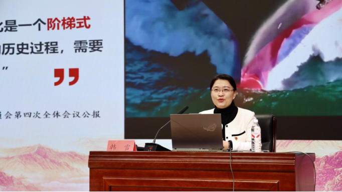 马克思主义学院副教授韩雪以《深学细悟党的二十届四中全会精神,凝聚奋进“十五五”新征程的磅礴力量》为题作首场专题辅导。报告带领全体学员学习领会党的二十届四中全会精神,阐释和解读了我国“十五五”时期经济社会发展的指导方针、主要目标和重大战略任务,引导全体学员把思想和行动统一到党中央决策部署上来,发扬奋斗精神、勇担时代重任,以实际行动彰显“强国有我”的青春担当。