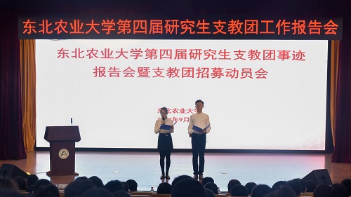 9月5日下午,我校于图书馆报告厅召开第四届研究生支教团事迹报告会暨支教团招募动员会。新疆自治区福海县,贵州省龙里县和西藏自治区昌都市服务队队长对一年的支教工作和切实体会进行报告分享。校团委书记于兴业,副书记吴立全、高天琦,校团委全体教师及500名学生代表参加了报告会。报告会由志愿者李其轩、段雨馨主持。