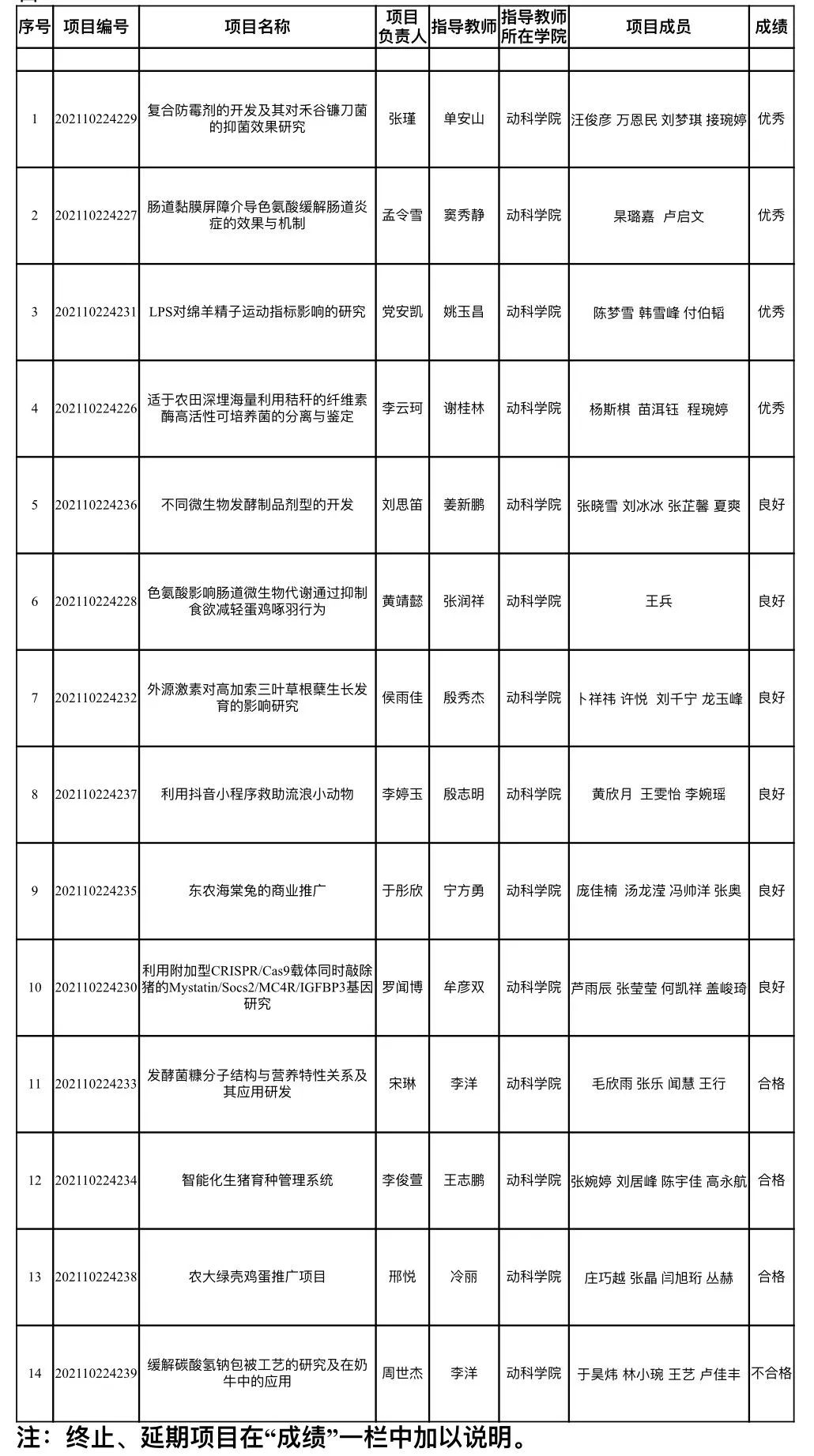 答辩结束后,我们根据各位老师对各个项目的评分,进行综合评定后,现将校级结题结果公示如下: